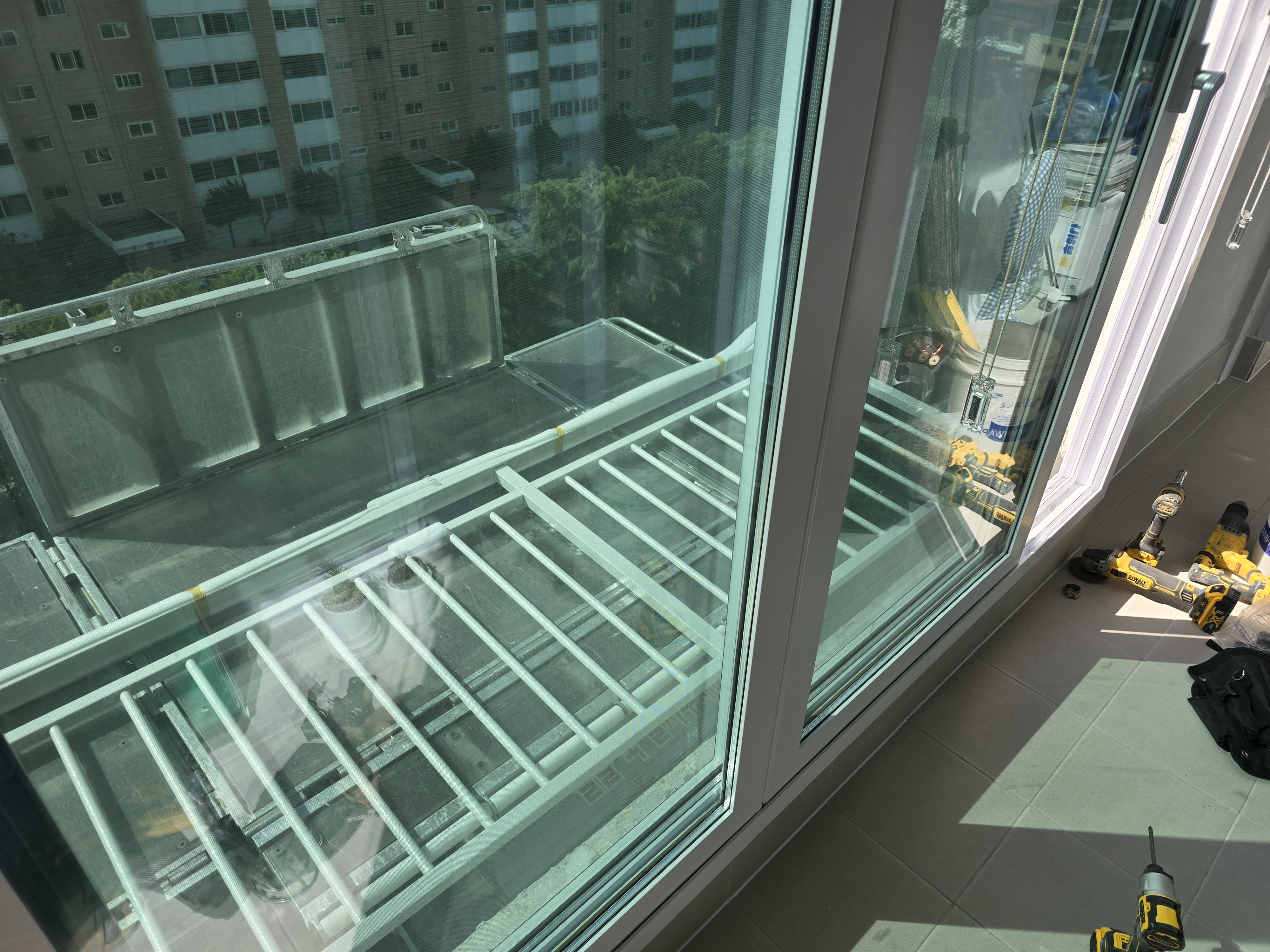 다행히 발코니 내부의 구조가 잘 설계되어 있어, 신축 아파트 시공 방식과 동일하게 골조에 직접 고정하는 방식을 적용할 수 있었습니다. 이는 흔들림을 완전히 차단하면서도, 구조적인 안정감을 주는 중요한 시공 포인트였습니다.