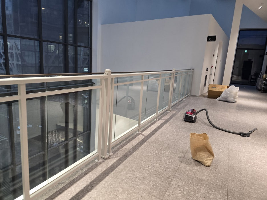 안녕하세요 난간대 전문 업체 삼영기업입니다. 부산에 위치한 모델하우스?였던 거 같습니다. 커튼월 부분에...