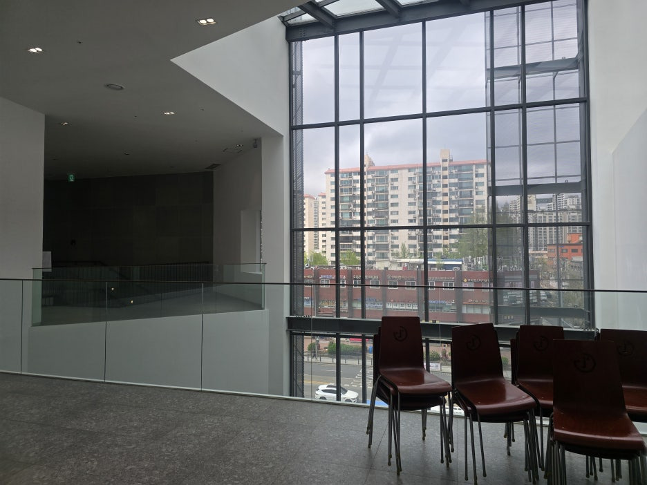 유리로 대체된 난간대는 안전성이 다소