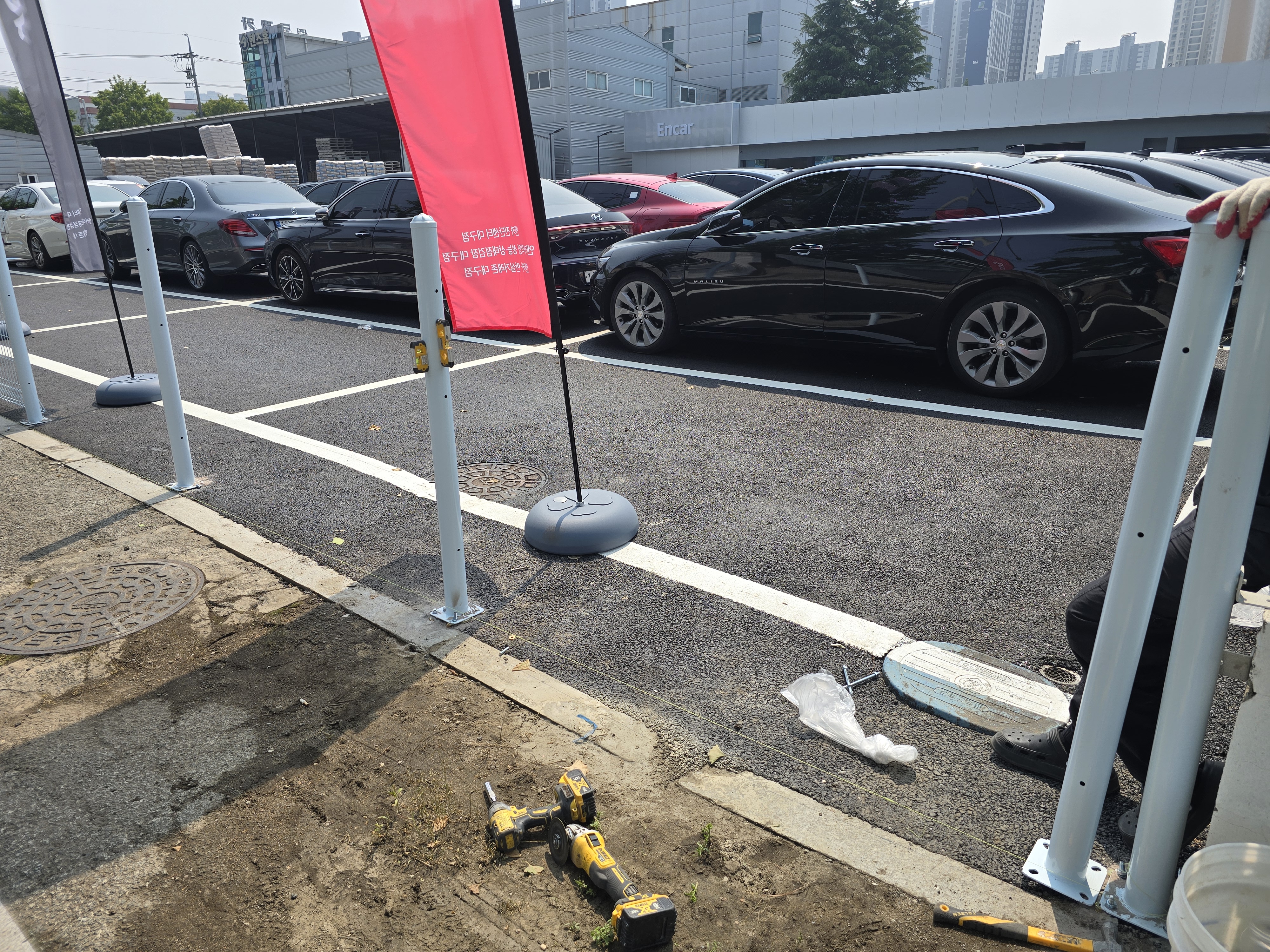오늘은 아스콘(아스팔트 콘크리트) 바닥 위에 흰색 메쉬휀스를 설치한 현장 사례를 소개해드리겠습니다. 이번 시공은 경계 구분과 보안 목적을 동시에 충족하는 깔끔하고 견고한 작업이었습니다.