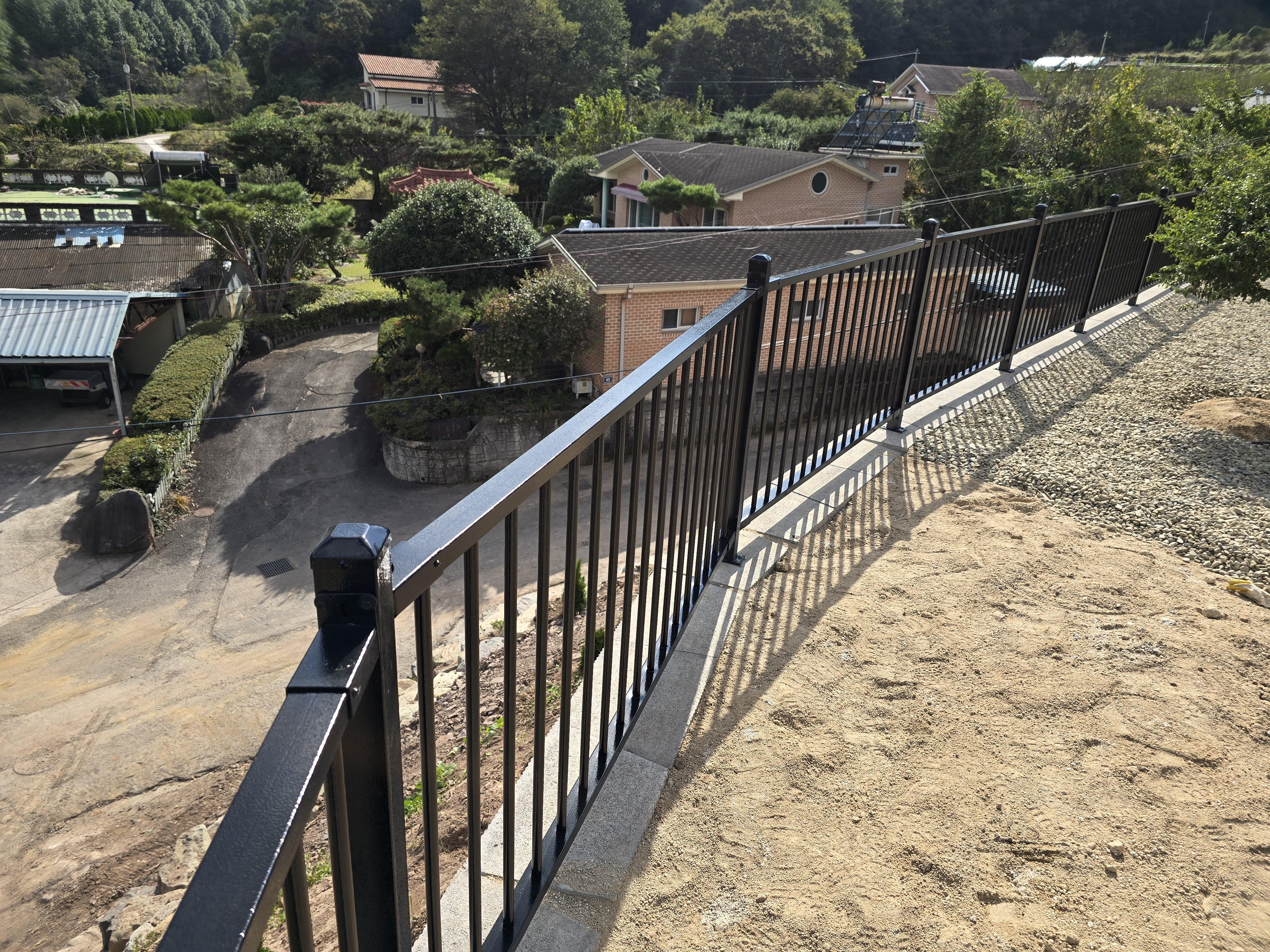 경남 진주 전원주택, 보강토 위에 설치한 디자인형 난간대 시공 사례