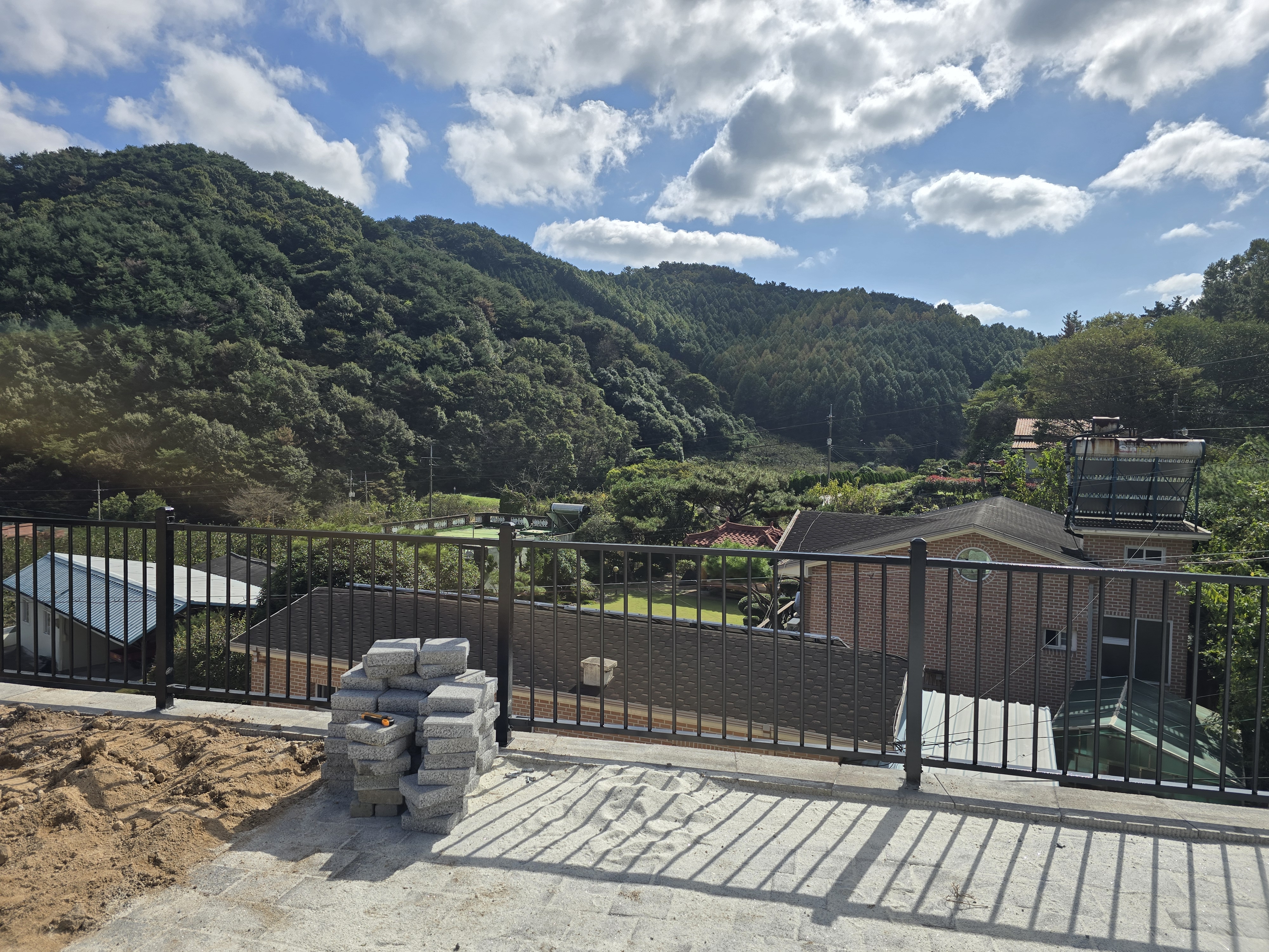 이번 현장은 산 중턱에 자리한 전원주택으로, 보강토 아래쪽이 약 5~10미터 낭떠러지로 이어지는 구조라 추락방지를 위한 안전난간대 설치가 반드시 필요한 환경이었습니다. 주택의 구조상 안전이 최우선이었지만, 동시에 외관 디자인 또한 중요했기에 기능성과 디자인을 모두 고려한 시공이 이루어졌습니다.