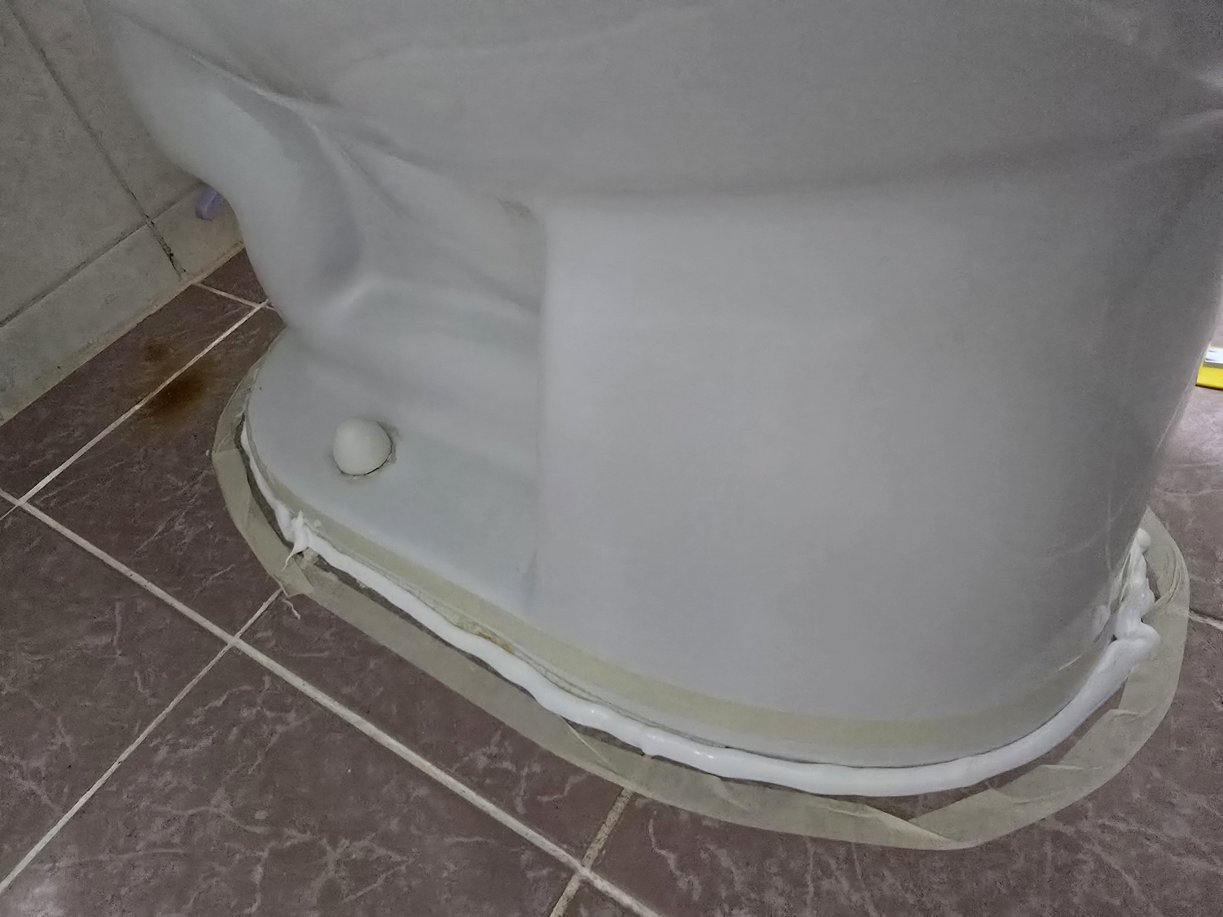 줄눈이 완전히 경화될 때까지 약 3~4시간 정도 기다린 후, 변기 주변과 벽 모서리 부분의 백색 실리콘을 새로 교체했습니다.