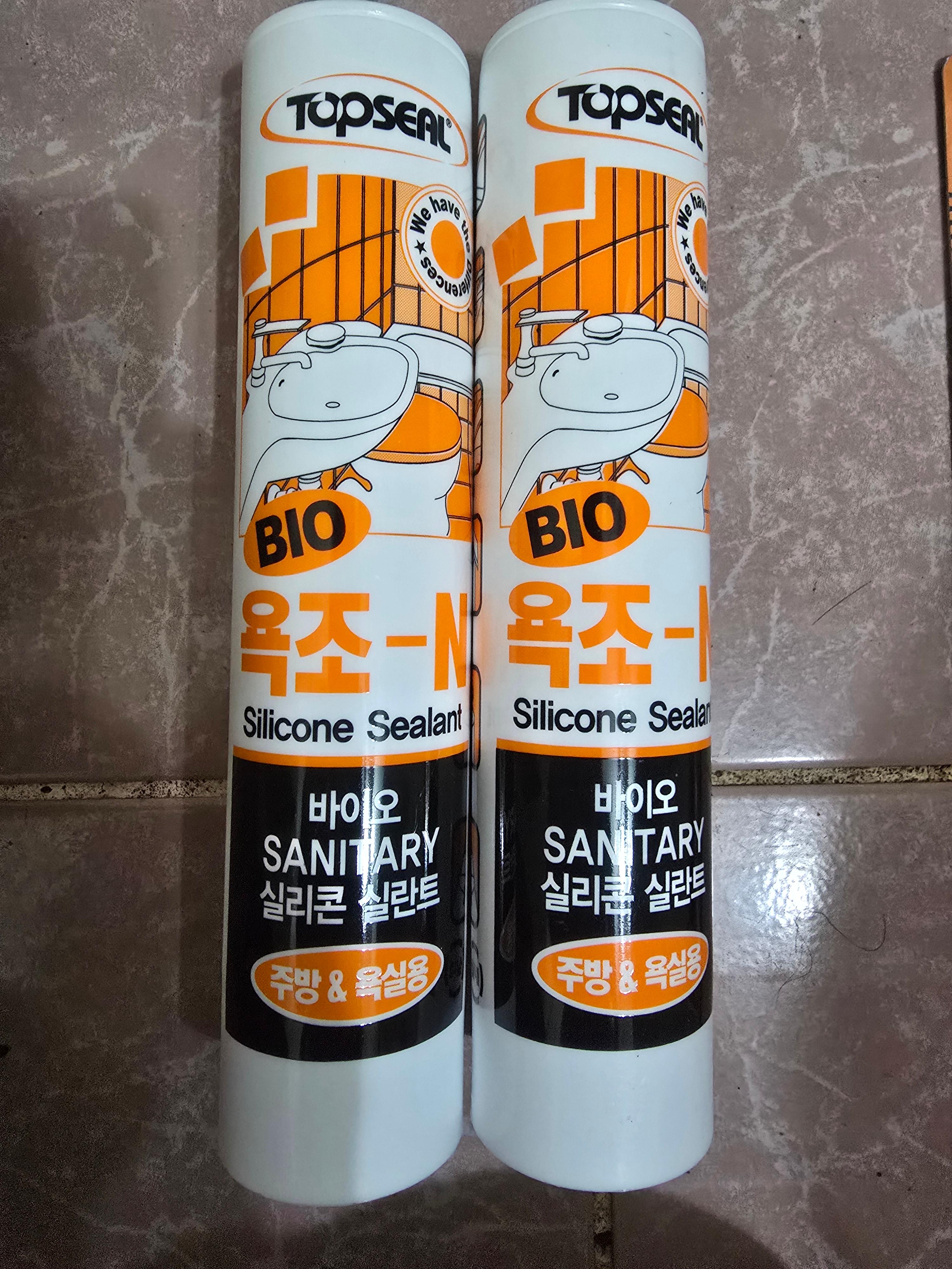 욕실용 전용 실리콘을 사용했으며, 시공 전에는 마스킹테이프를 양쪽에 붙여 깔끔한 라인을 잡았습니다.