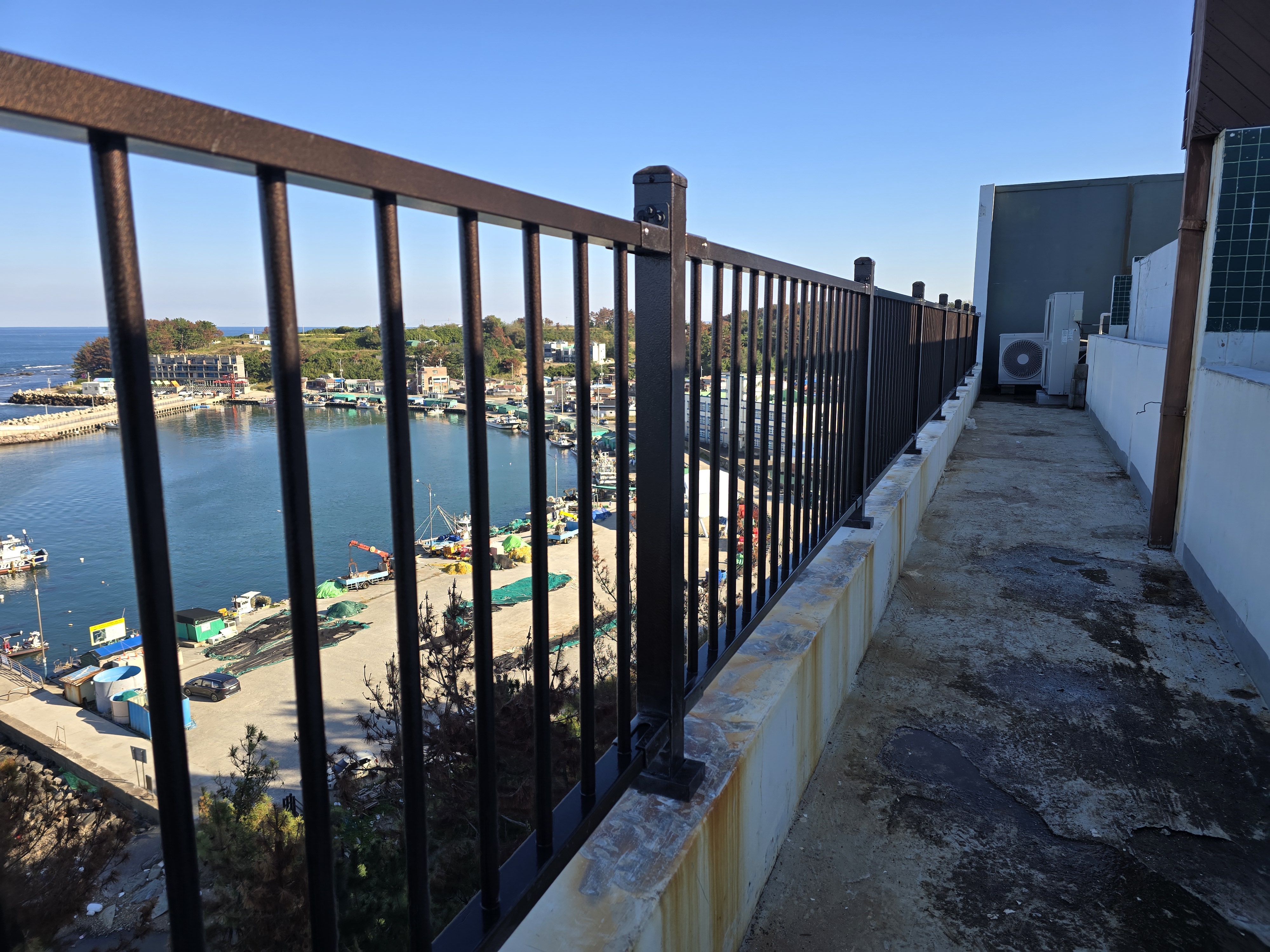 포항 바닷가 펜션 옥상에 설치된 안전난간대 시공 사례