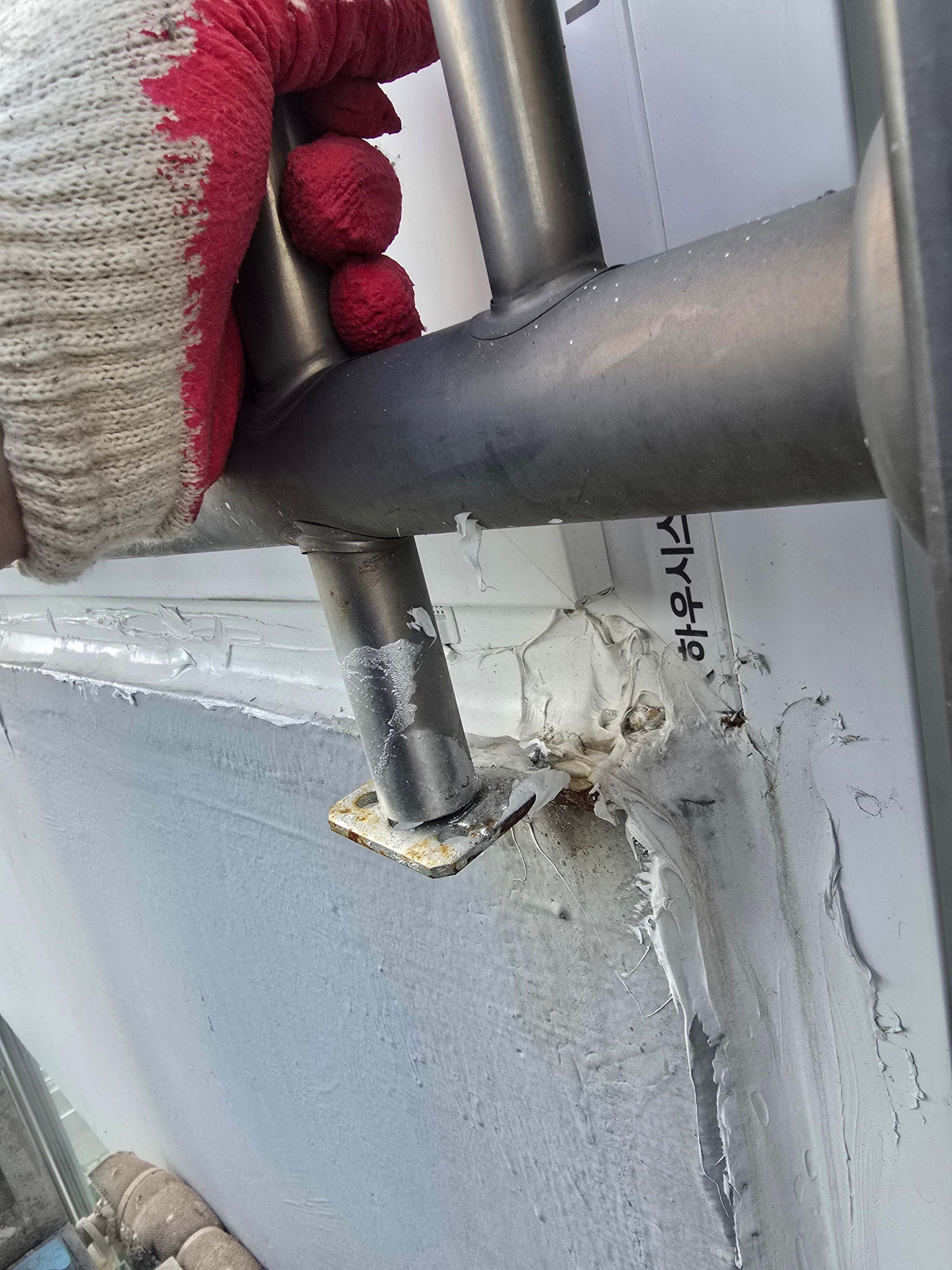 기존에 설치되어 있던 스테인리스 난간대가 세월이 지나며 용접 부위가 떨어지고 흔들림이 심해진 상태였습니다. 특히 고층에서 흔들림이 발생하면 안전사고로 이어질 수 있기 때문에 빠른 교체가 필요했습니다.