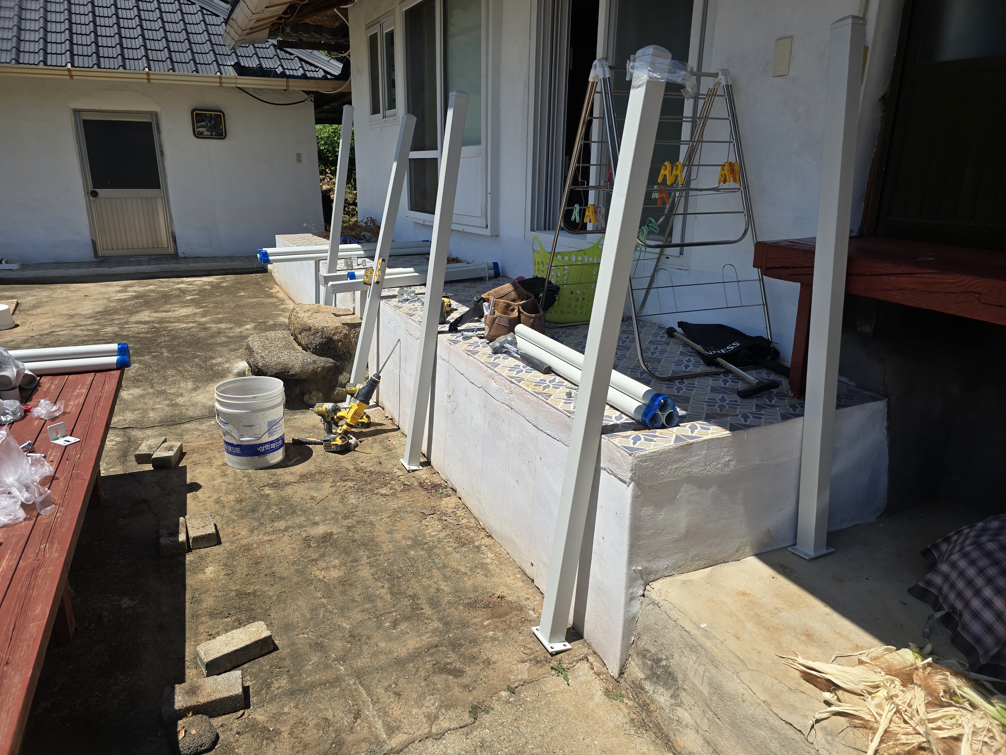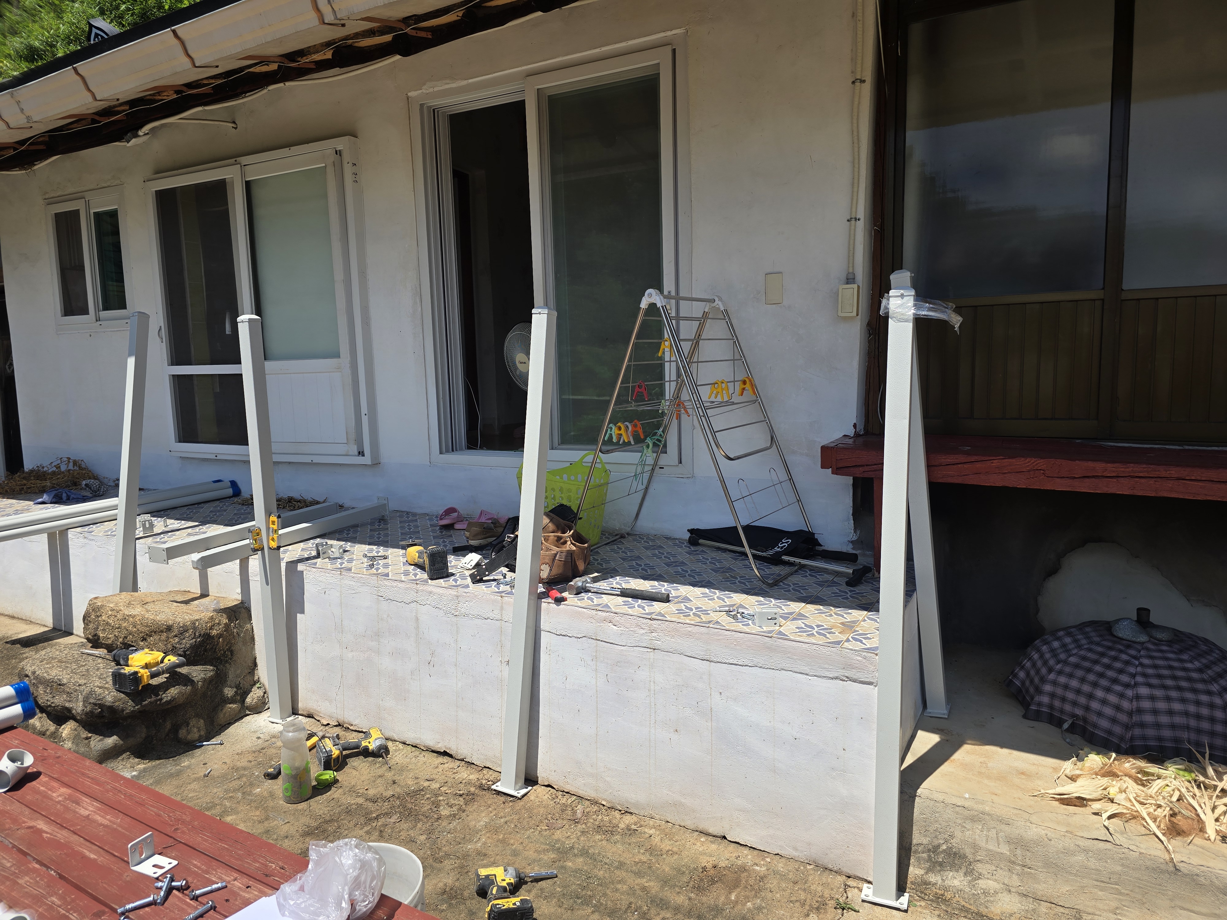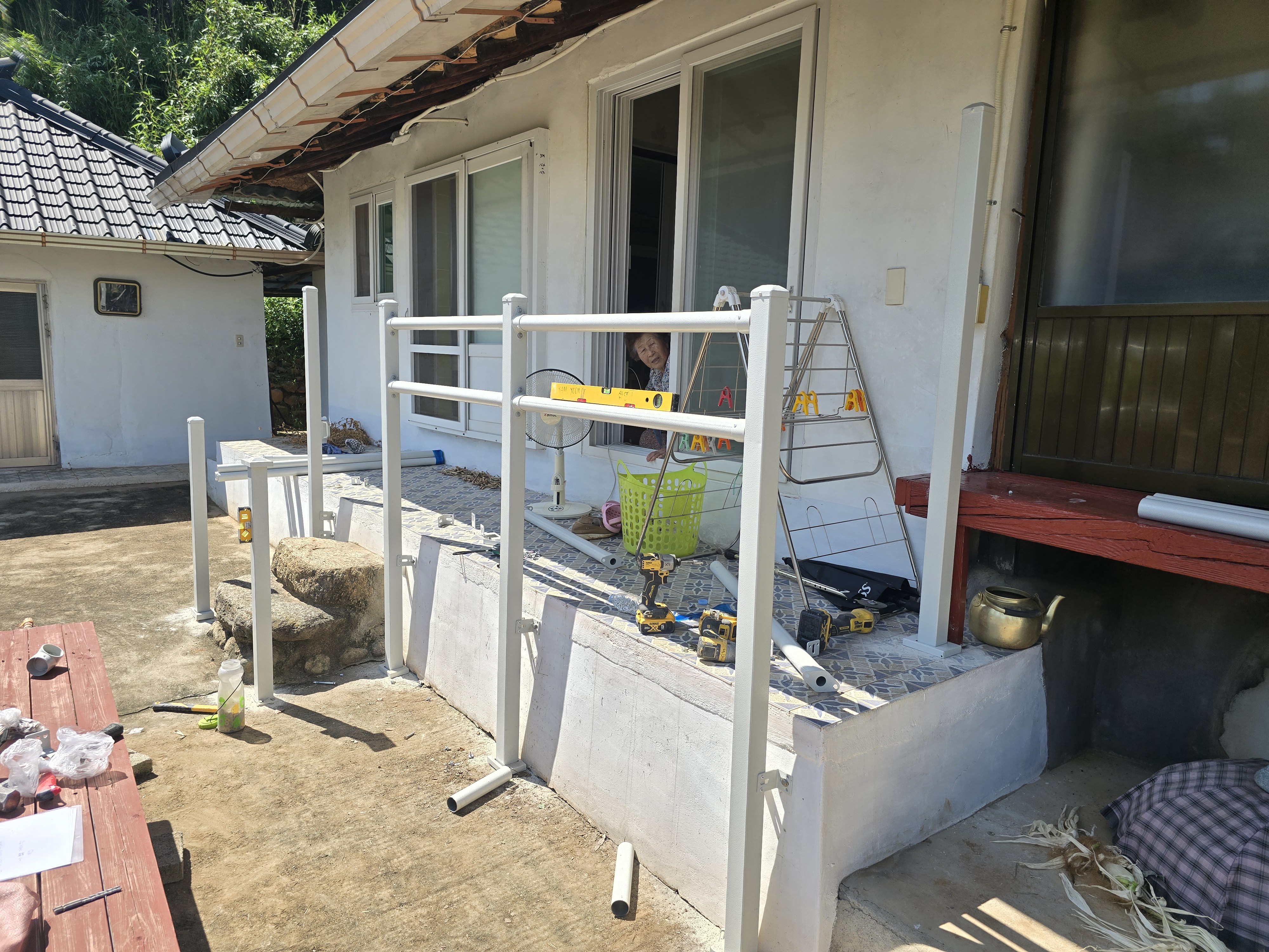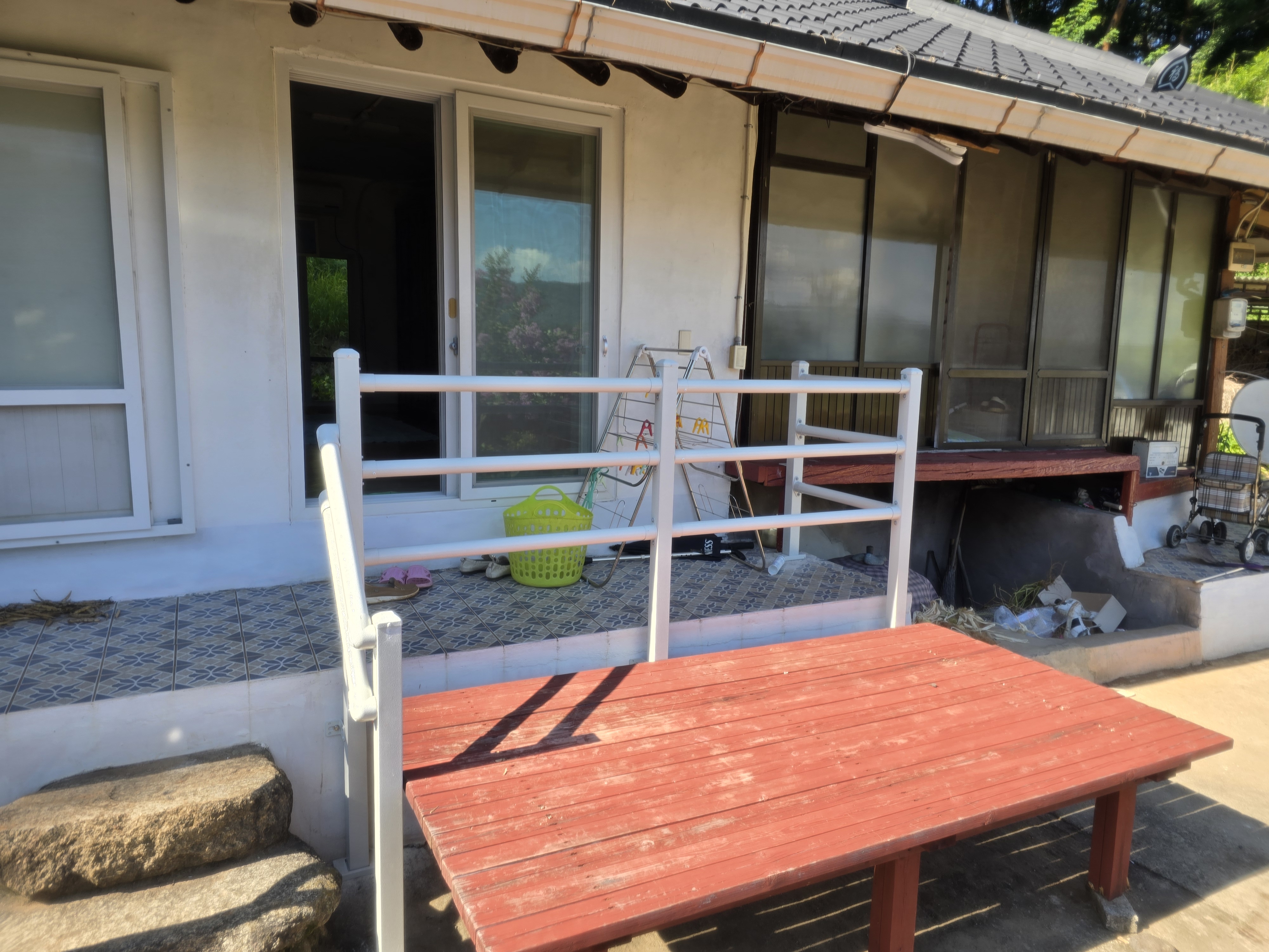 시공 시간은 약 반나절 이상 소요되었어요. 기존 구조물 상태 점검, 높낮이 조절, 안전 라인 확보, 마감 조치를 포함하면 대략 3~5시간 정도가 소요되는 현장이었어요. 설치 난이도와 계단 형태에 따라 조금씩 달라지며, 시골 주택·단독주택처럼 계단 높이가 있는 구조는 보강이 필요한 경우가 많아 시간이 더 걸릴 수 있어요.