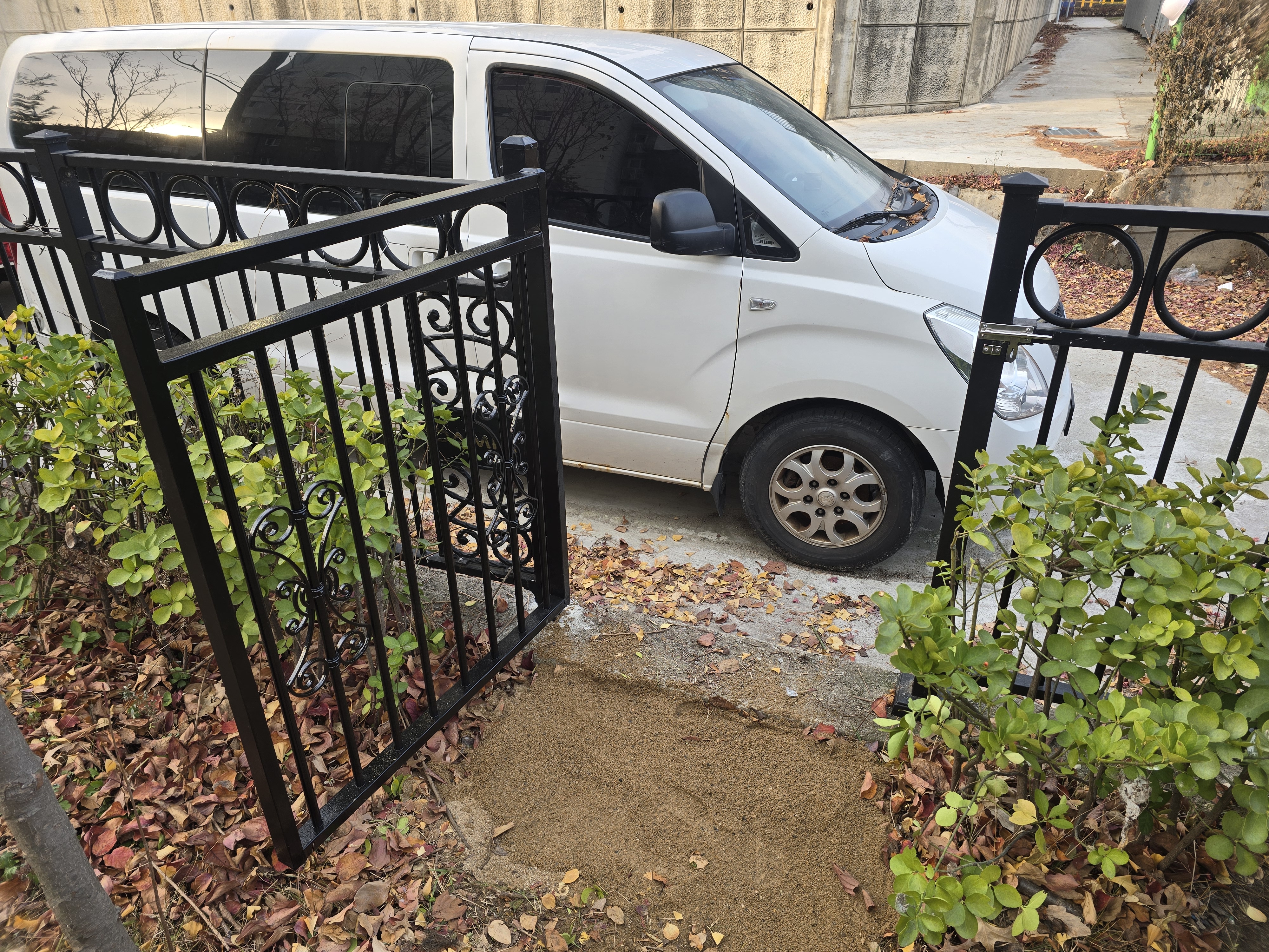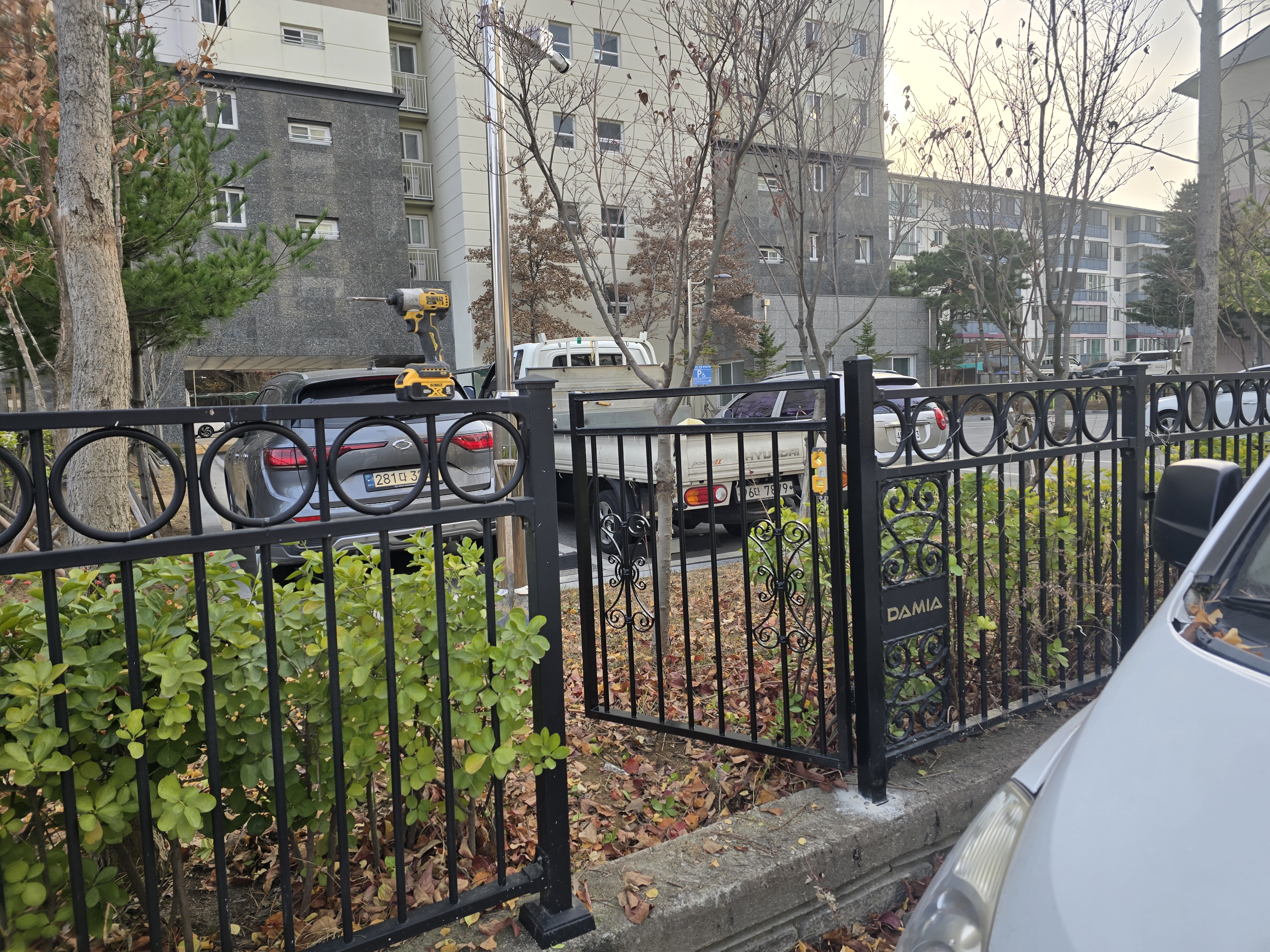 기존 건물 외부에는 (휀스) 구조물이 연속으로 설치되어 있었고, 외부와 내부를 명확히 구분하는 역할은 잘하고 있었지만 출입 기능은 전혀 없는 상태였습니다. 그래서 전체를 변경하기보다는 필요한 구간만 기존 (울타리) 일부를 철거하고, 그 자리에 정확한 치수를 맞춰 쪽문을 주문 제작하는 방식으로 진행했어요. 이렇게 하면 구조적인 안정성을 유지하면서도 공사 범위를 최소화할 수 있어요.