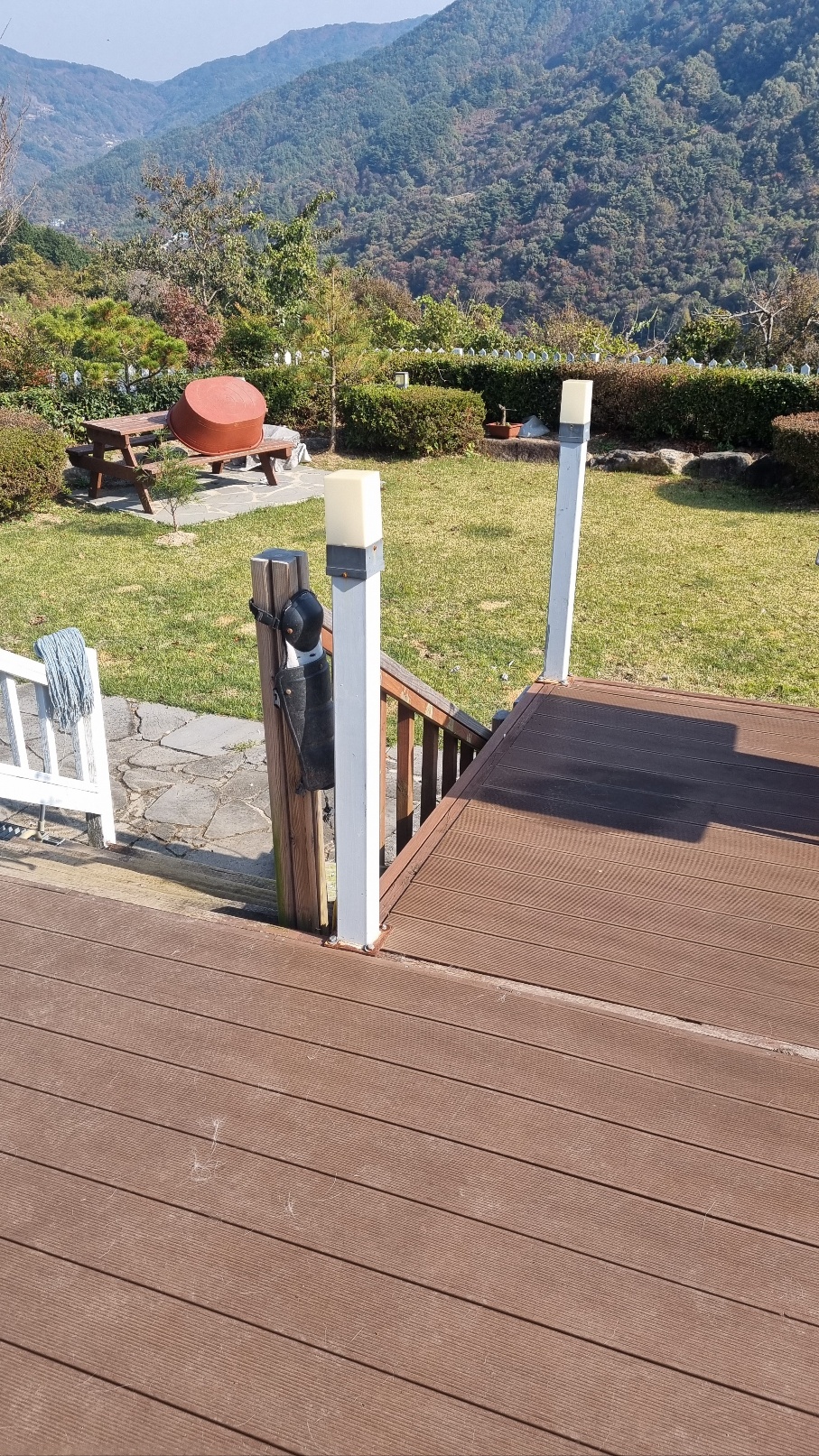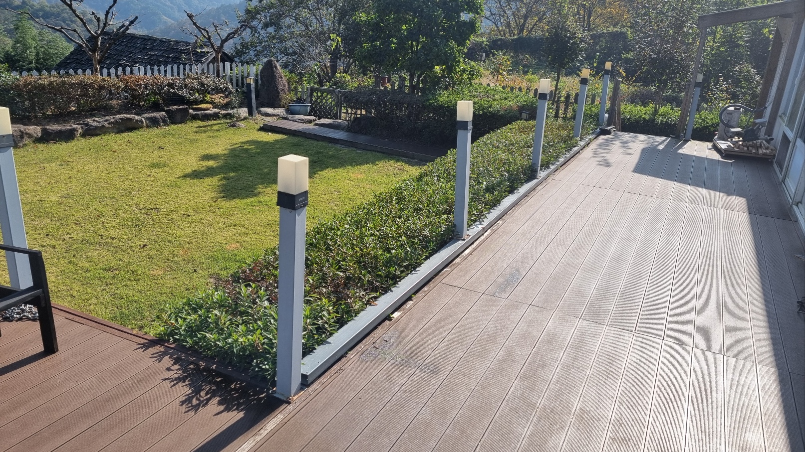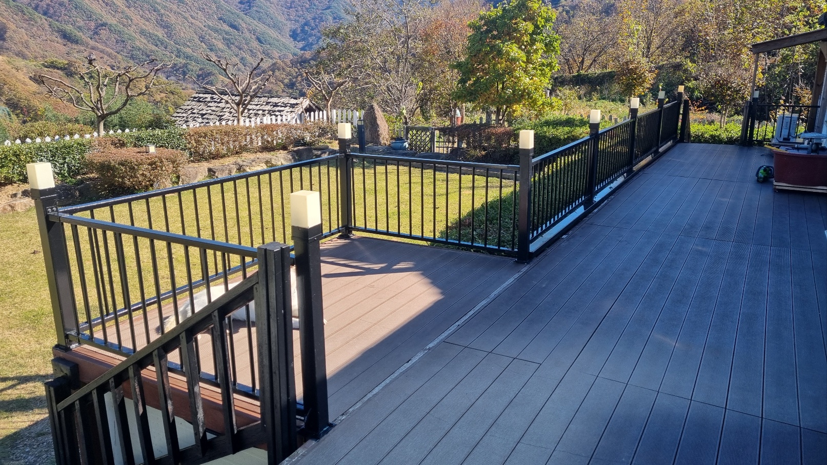 위치는 전남 구례와 하동 사이에 자리 잡은 전원주택 현장이에요. 자연환경이 좋은 지역인 만큼 기존에는 목재 구조물로 외곽을 막아두셨는데, 시간이 지나면서 나무가 썩고 뒤틀려 안전성과 외관 모두 문제가 생긴 상황이었습니다. 특히 비가 잦은 지역 특성상 목재는 유지 관리 부담이 커서 교체를 결정하셨습니다.