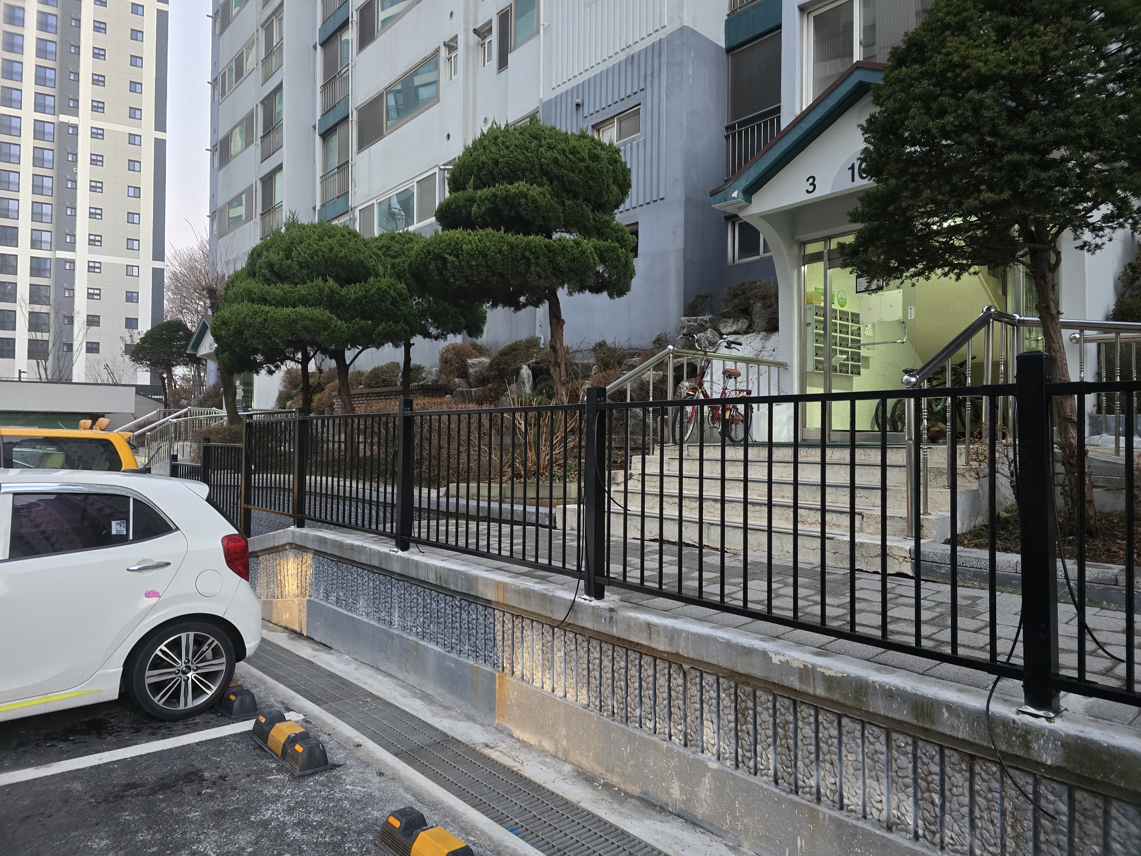 이번에 소개할 사례는 인천에 위치한 아파트 현장으로, 기존에 오래 사용해 오던 철재 구조물이 노후화되어 전면 철거 후 새로운 구조물로 교체를 진행한 작업이에요.