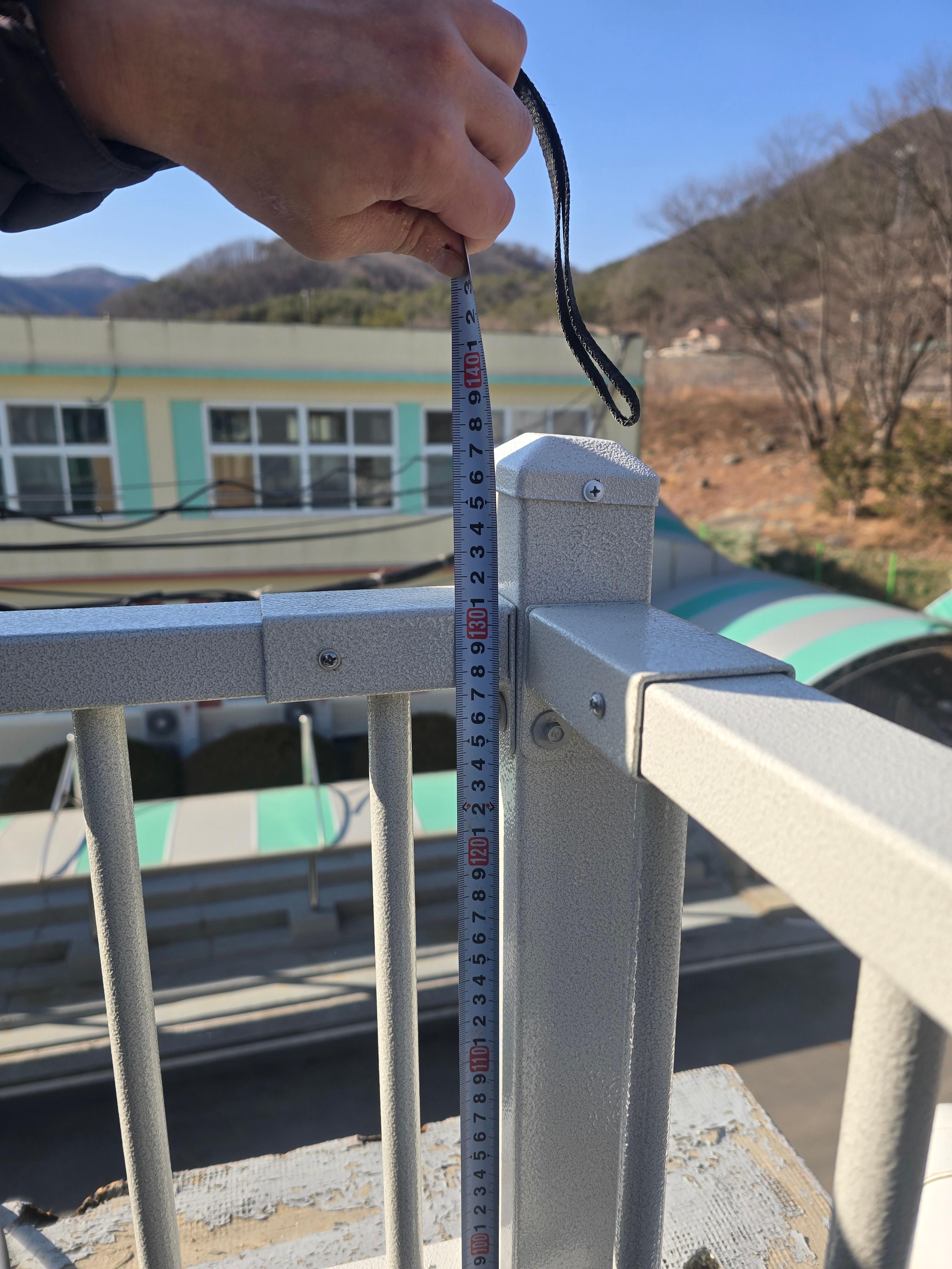 현장을 직접 방문해 확인했을 때, 바닥 마감면에서 기존 골조 상단바까지의 높이는 약 700~800 정도로 측정되었어요. 일반적인 건물이라면 최소 기준에 근접한 수치일 수 있지만, 학교라는 점을 고려하면 불안 요소가 분명히 존재했습니다. 그래서 요청 사항은 명확했어요. 학생들의 안전을 우선으로 고려해 난간 높이를 H:1200 이상으로 확보해 달라는 내용이었습니다.