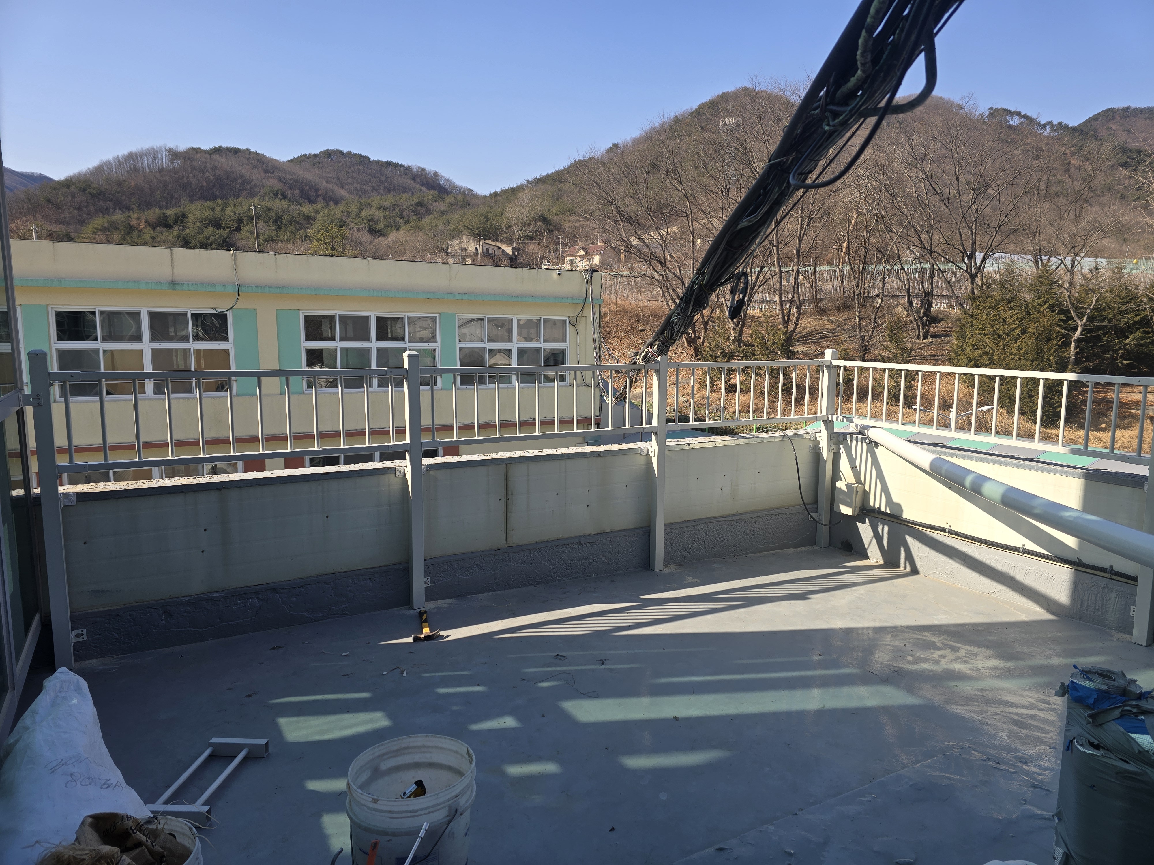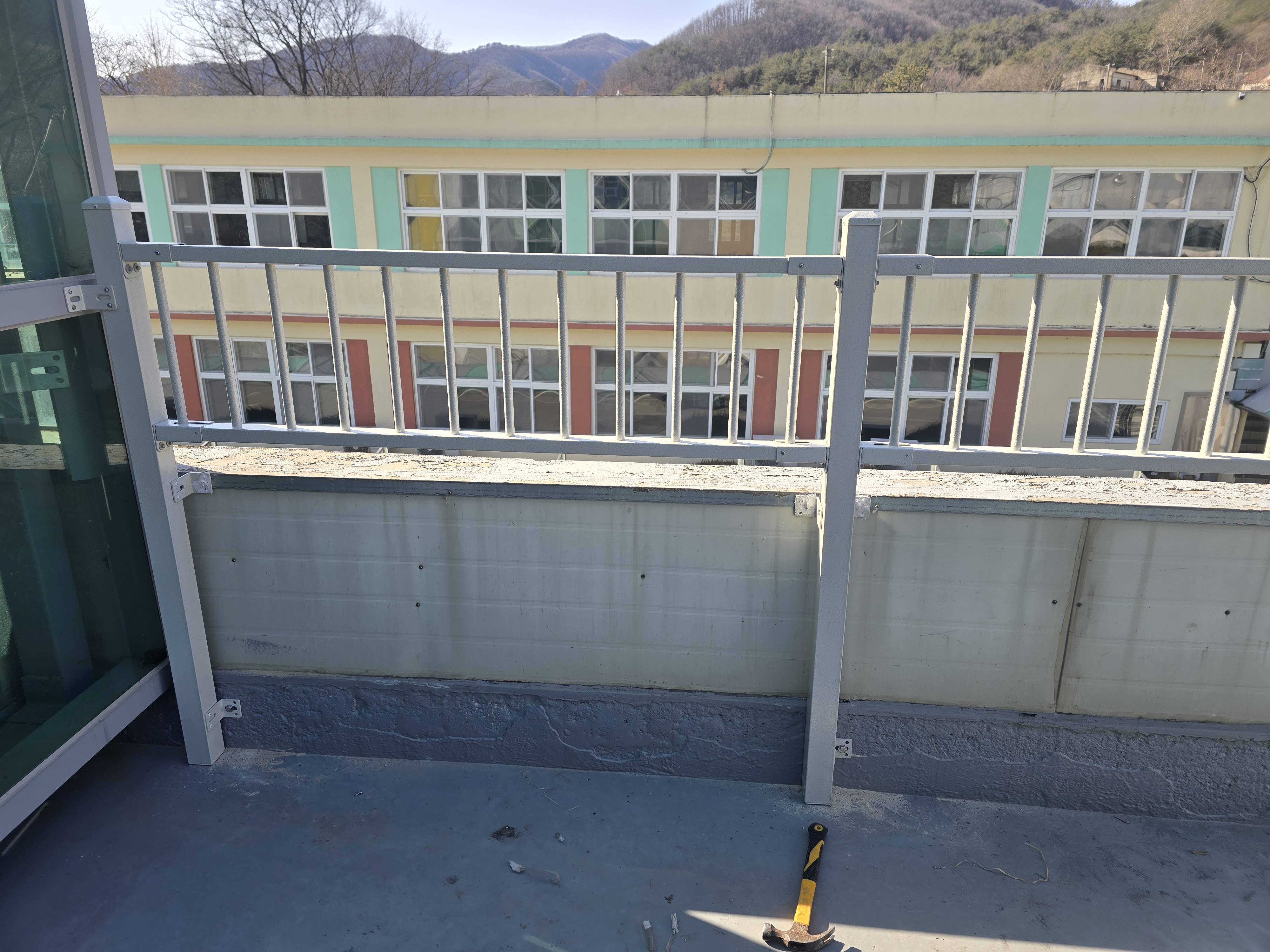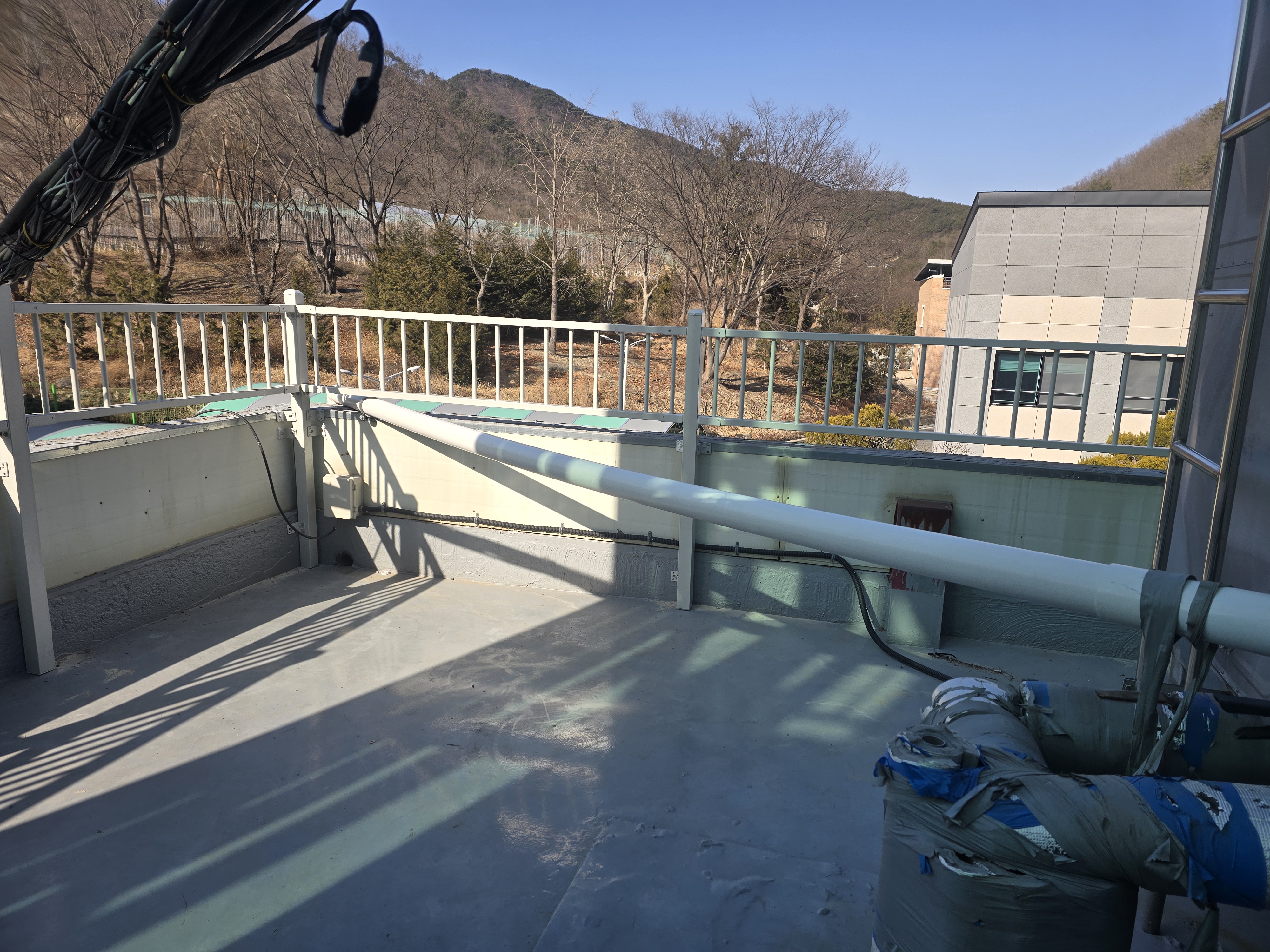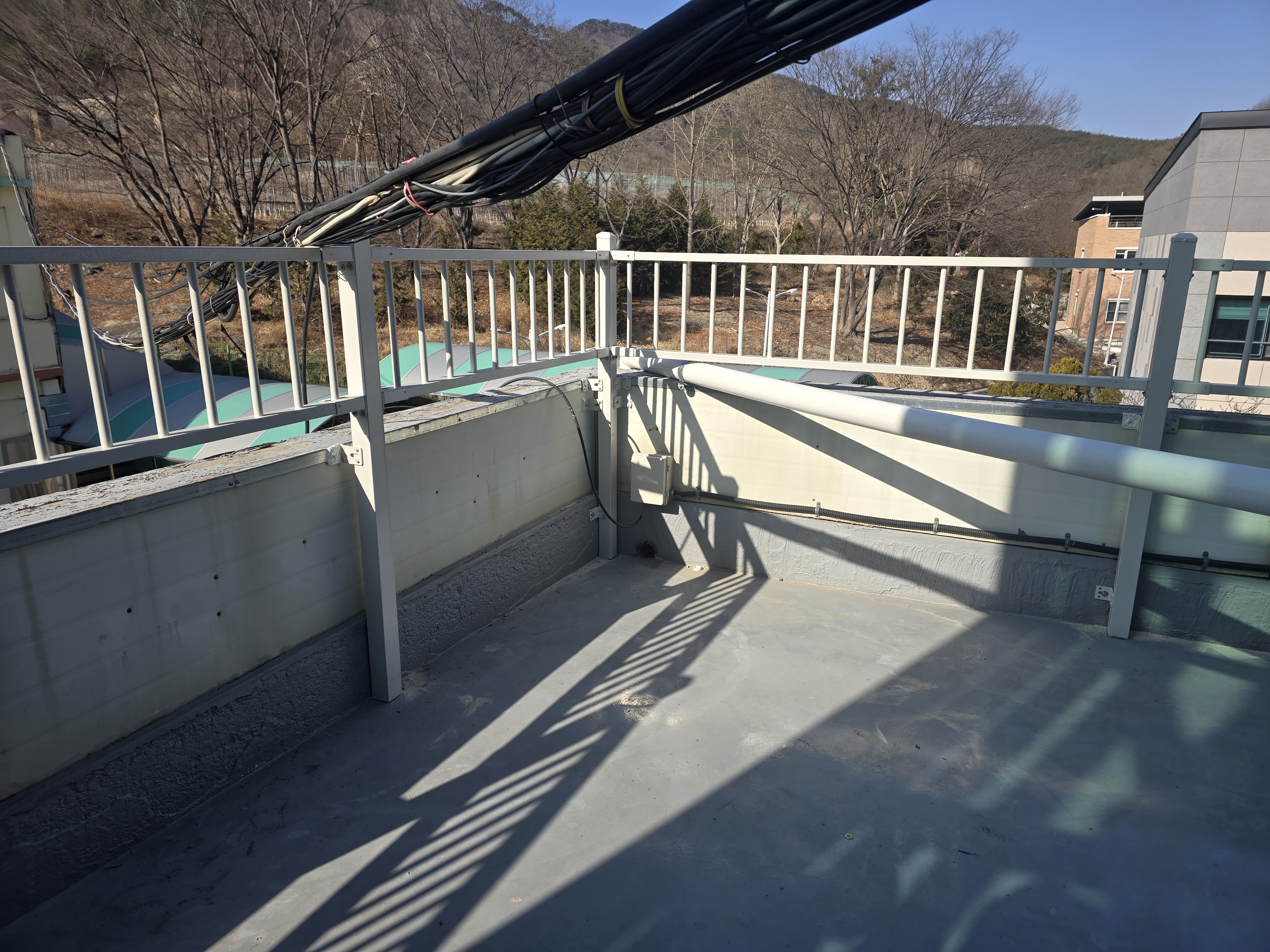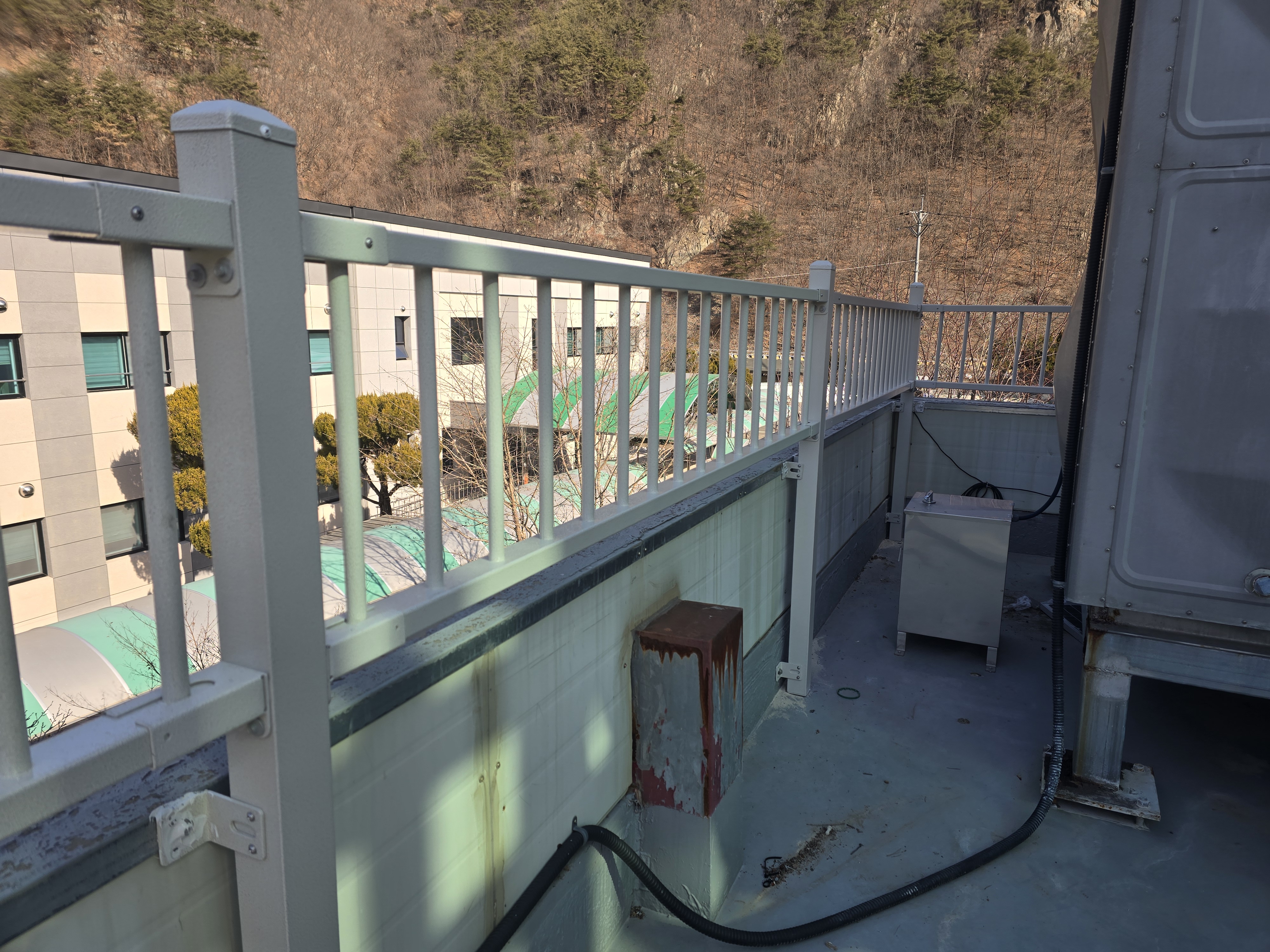 이번 작업은 경북 포항과 청송 사이에 위치한 학교 옥상에서 진행된 사례입니다. 학교라는 공간 특성상 평소 학생들의 출입이 잦지는 않지만, 혹시 모를 상황에 대비해 안전 기준을 충분히 확보하는 것이 무엇보다 중요한 장소였어요. 옥상은 설비 점검이나 유지 관리 시 교직원 및 관계자가 올라갈 수 있기 때문에 단순 형식적인 구조물로는 부족하다고 판단되는 상태였습니다.